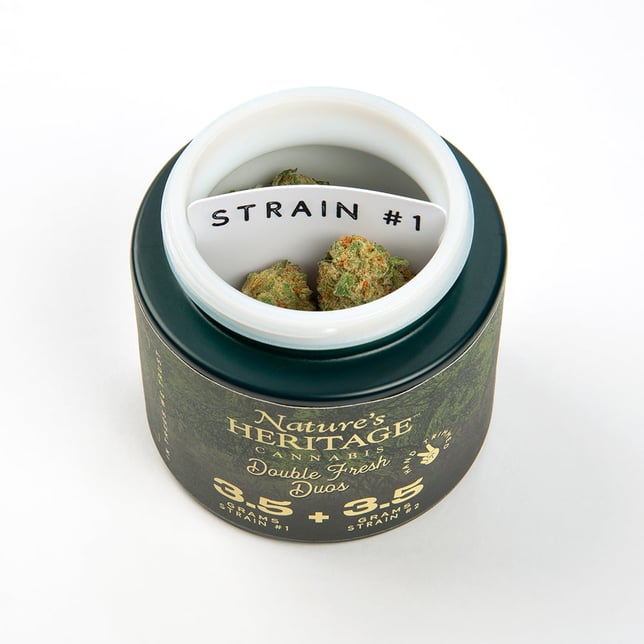 A fresh new variety pack from Nature's Heritage, the first in the market. 1 jar, 2 complimentary strains, 7 grams of fresh flower. In each jar, you’ll experience: · Go out: a sativa dominant hybrid to get your day started right · Chill out: an indica-dominant hybrid to wind down and relax · Anytime: mix them together and create your own blend
